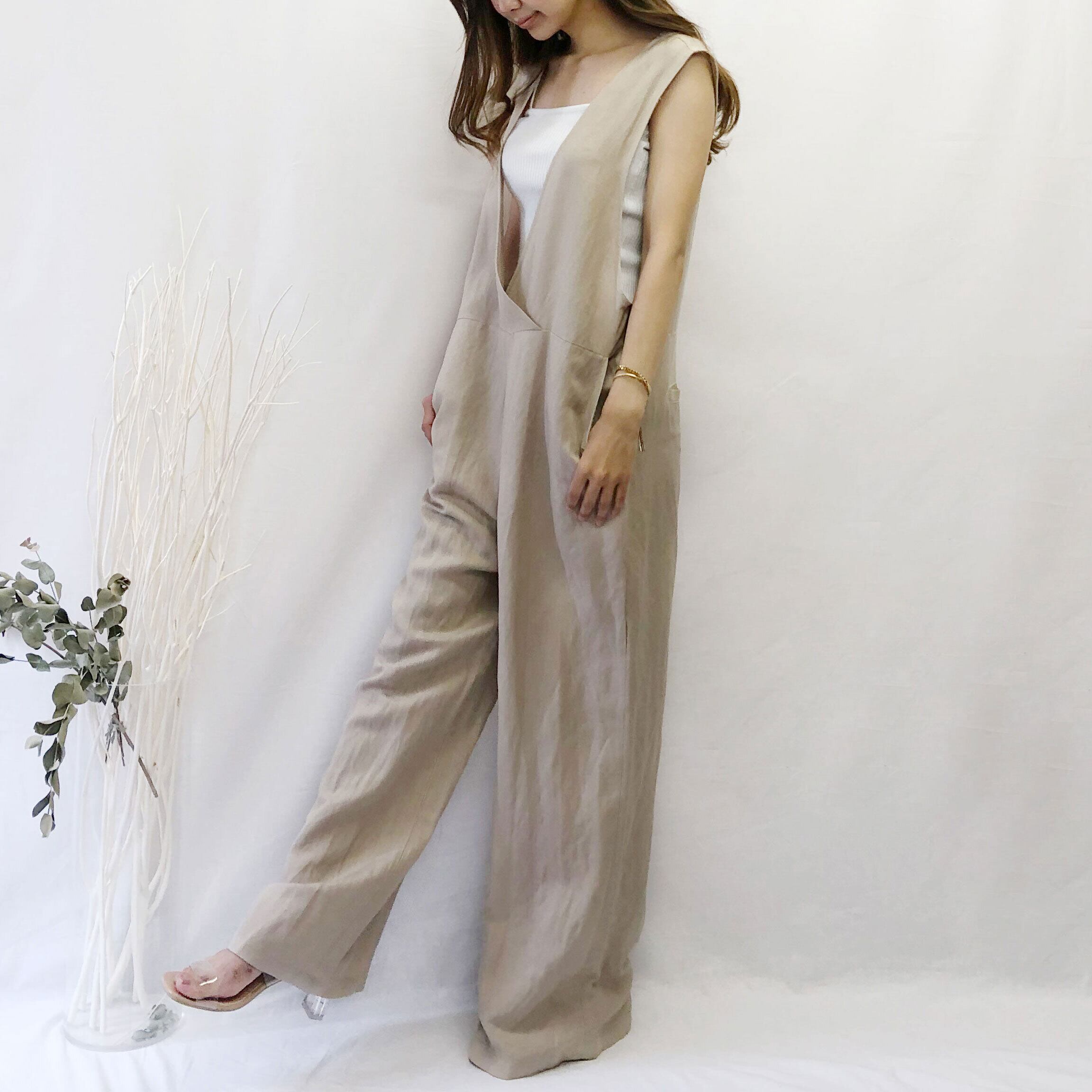 カットソーやタンクトップと合わせるとスッキリとかわいく着こなせます。